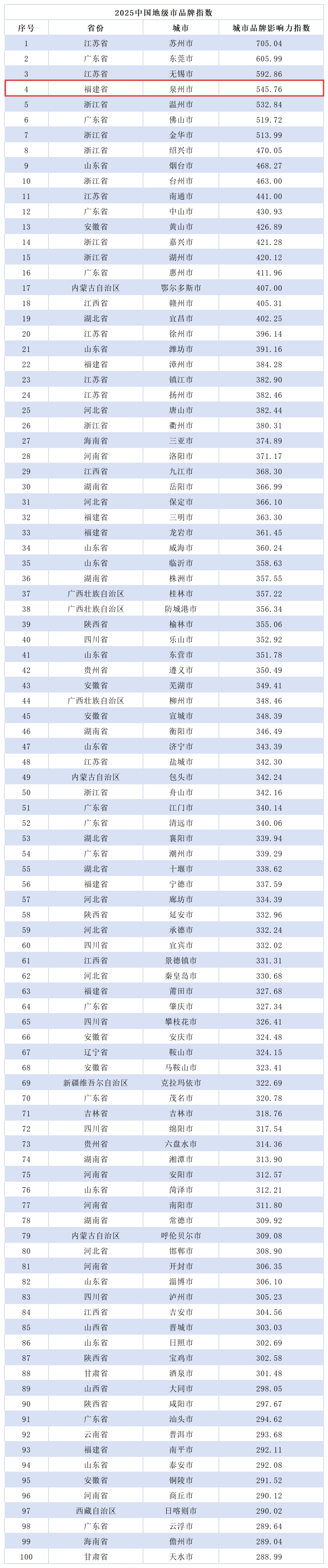 12月6日,2025城市品牌论坛在人民日报社举行,国家相关部委领导、地方主管部门代表以及来自高校、研究机构的专家学者等出席会议。会上发布了2025全国地级市城市品牌指数(不含省会以上城市)前100名城市名单,为各城市高质量发展树立鲜明导向。